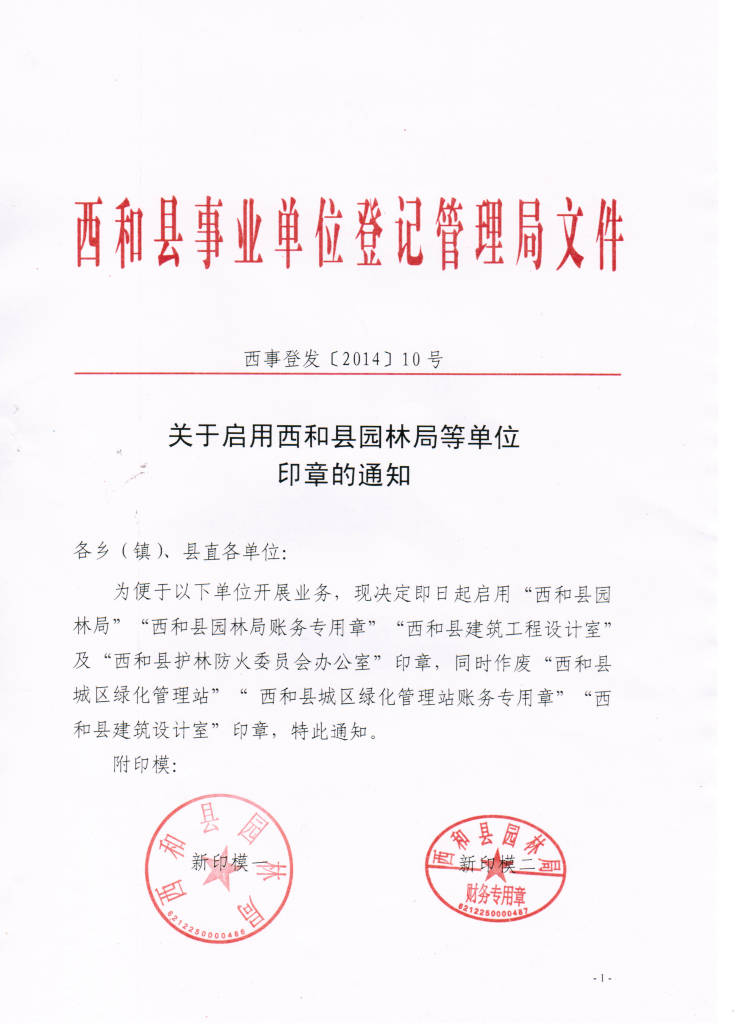关于启用西和县园林局等单位印章...