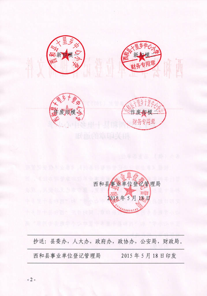 关于启用西和县十里乡中心小学相关印章的通知