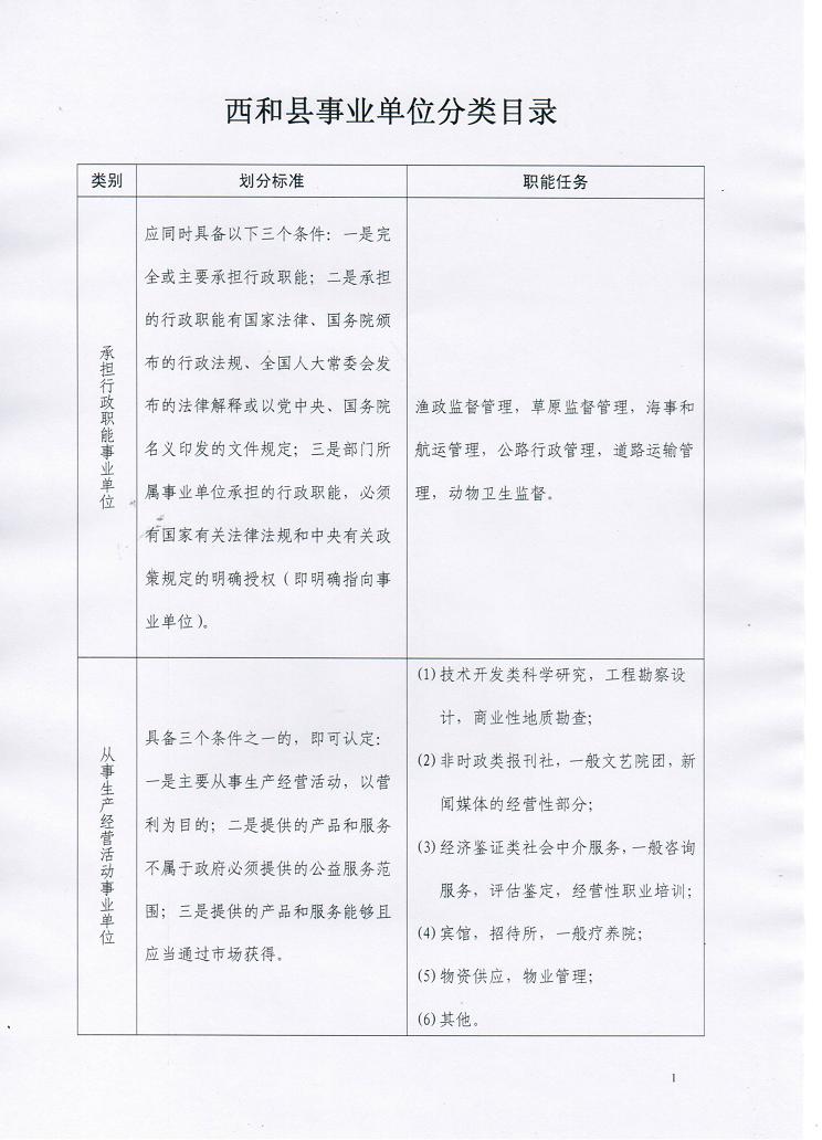 西和县事业单位分类目录